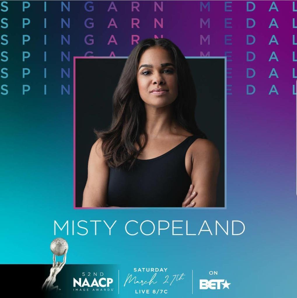 Ballet dancer Misty Copeland will receive the prestigious Spingarn Medal, which is presented annually in recognition of the highest or noblest achievement by a living African American during the preceding year or years. Copeland made history by becoming the first African American Female Principal Dancer with the prestigious American Ballet Theatre. Throughout her career, she has worked with many charitable organizations and is dedicated to giving of her time to work with and mentor young girls and boys. In 2014, President Obama appointed Misty to the President’s Council on Fitness, Sports and Nutrition. Previous recipients of this award include: Mrs. Daisy Bates (Little Rock Nine), Jesse L. Jackson, Myrlie Evers-Williams, Earl G. Graves Sr., Oprah Winfrey, Cecily Tyson, Harry Belafonte and Sidney Poitier. The Spingarn medal will be presented to Copeland by Susan Fales Hill, during the virtual awards show on Tuesday, March 23rd.
