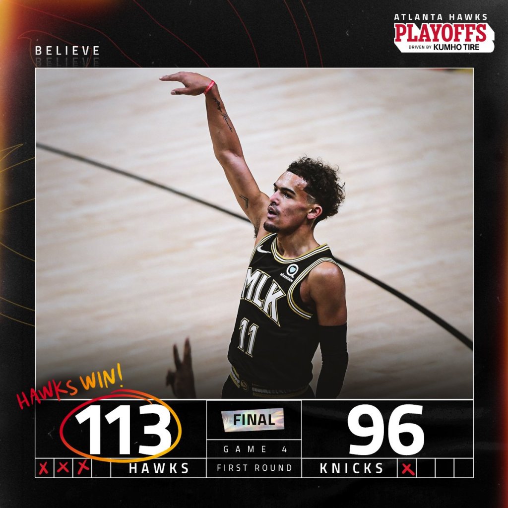 Trae Young led the Hawks with 27 points and 9 assists and John Collins had 22 points and 8 rebounds. Danilo Gallinari had a big game off the bench with 21 points and Kevin Huerter scored 11 points off the bench. Bogdan Bogdanovic had 12 points, 8 rebounds and 6 assists and Clint Capela had 10 points and 15 rebounds.