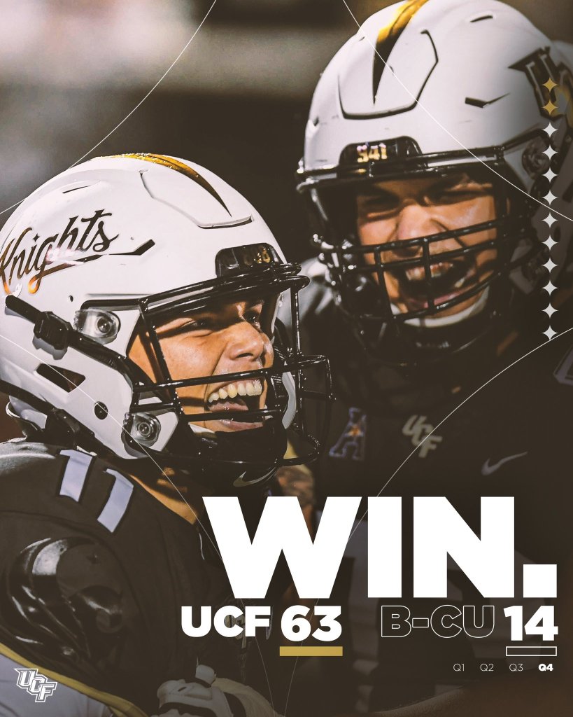 UCF and Bethune Cookman were tied at 7-7 and the Knights scored 28 unaswered points before halftime. The Knights led 35-7 at the half and the score was 42-14 before Bethune Cookman scored again. Running Back Isaiah Bowser only rushed for 59 yards, but had 4 touchdowns for UCF. Dillon Gabriel threw for 332 yards, 2 touchdowns and had a rushing touchdown. Wide Receivers Ryan O’Keefe had 8 catches for 110 yards and Brandon Johnson had seven catches for 81 yards and a touchdown.