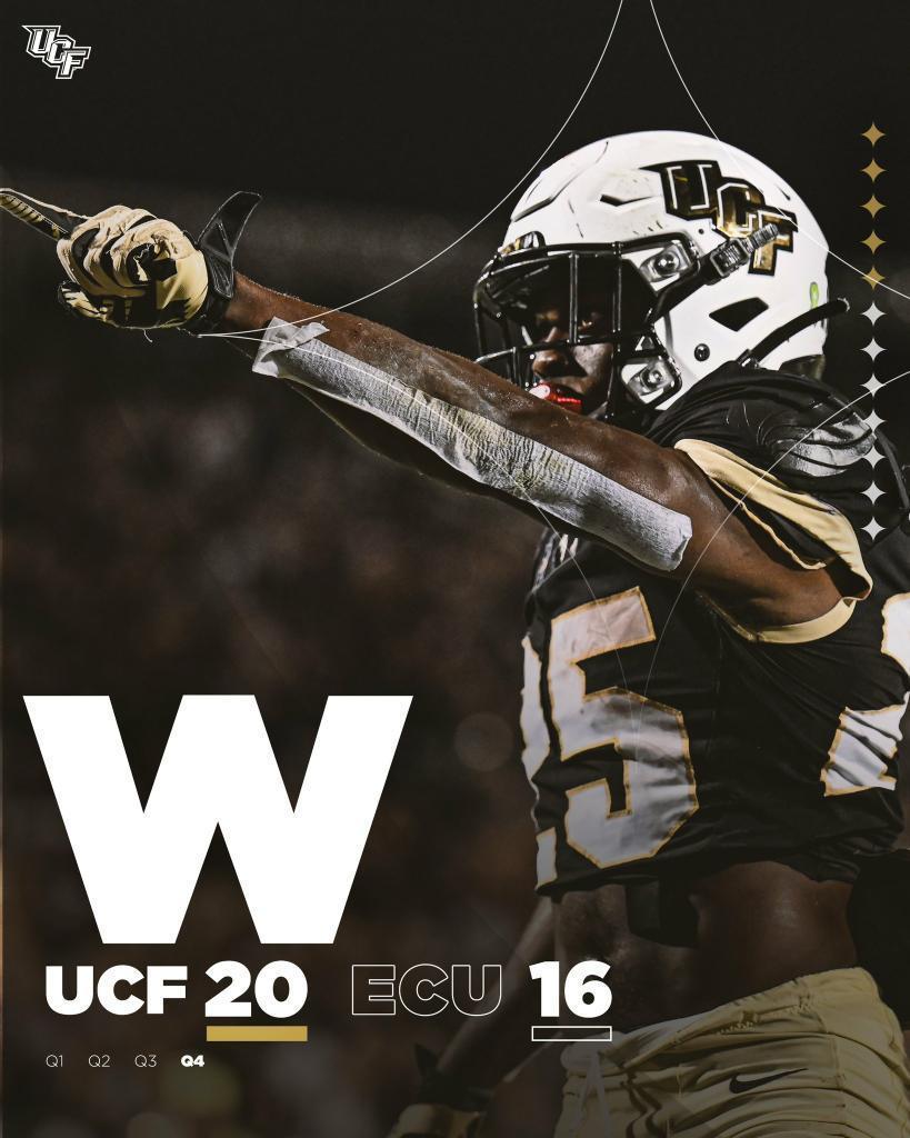 Mark-Antony Richards one yard rushing touchdown with 23 seconds left gave UCF a 20-16 victory over East Carolina. Mikey Keene threw for 194 yards and 1 interception. Running Backs Johnny Richardson rushed for 104 yards and Richards rushed for 58 yards and both backs had one rushing touchdown each. Richards had an amazing 9.7 yards per carry and had some key runs for the Knights. Wide Receiver Ryan O’Keefe had 10 catches for 73 yards and Richardson had 2 catches for 51 yards.