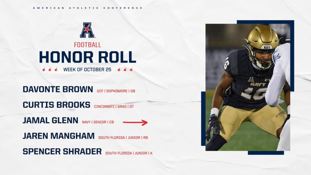 The American Athletic Conference has announced the winners of the league’s weekly football honors for the eighth week of the 2021 season.