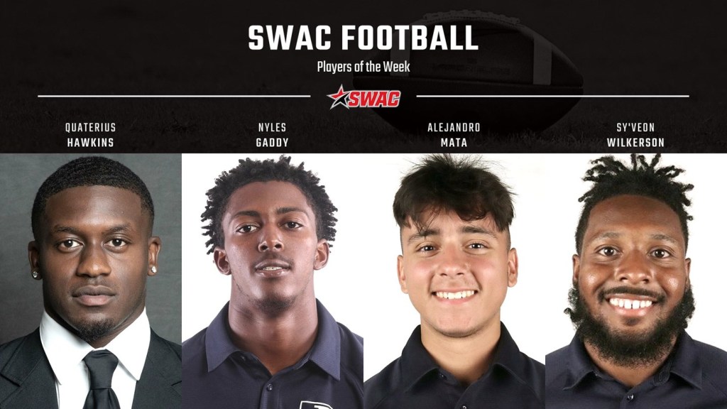 The Southwestern Athletic Conference has named Grambling State’s Quaterius Hawkins along with Jackson State’s Nyles Gaddy, Alejandro Mata and Sy’veon Wilkerson its SWAC Football Players of the Week for their outstanding performances during games played this past week of competition.