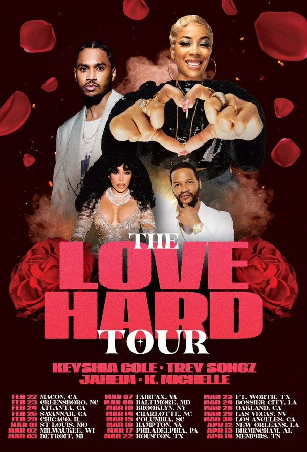 Get ready for an unforgettable experience as the “Love Hard” tour prepares to take center stage, featuring a stellar lineup of R&B icons. The tour, headlined by Grammy® nominated, multi-platinum selling, singer/songwriter Keyshia Cole with multi-platinum R&B icon Trey Songz, will also showcase the incredible talents of Jaheim and K. Michelle. This groundbreaking tour is proudly presented in partnership with the esteemed Black Promoters Collective, promising a series of electrifying performances across the nation.