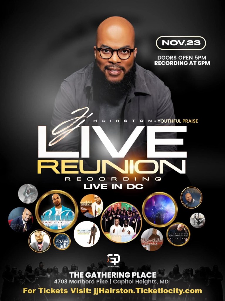 The 25th anniversary reunion live recording of JJ Hairston and Youthful Praise will feature reimagined versions of their Billboard chart-topping #1 hits, iconic and classic songs, along with new music that showcases the choir’s continued relevance and Hairston’s powerful, spirit-filled leadership. Special guest artists set to take the stage include: Tamela Mann, Jonathan McReynolds, Melvin Crispell III, Tim Bowman Jr, Wendy Wyatt, Anthem Nights Music, Janae Jones and Jumbo (Nigerian artist). The anniversary recording is set to take place Saturday, November 23rd at The Gathering Place (4703 Marlboro Pike, Capitol Heights, MD) at 6PM.