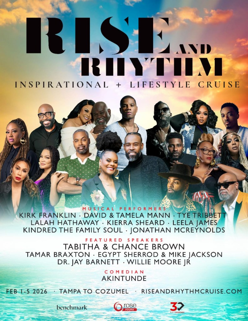 The four-night cruise will depart from Tampa, FL and visit Cozumel, Mexico. This special event brings together a stellar lineup of musical artists and influential speakers for an unforgettable experience. The musical performances feature powerhouse artists Kirk Franklin, David & Tamela Mann, Tye Tribbett, Lalah Hathaway, Kierra Sheard, Leela James, Kindred The Family Soul and Jonathan McReynolds, offering a blend of music that is sure to invigorate and uplift the audience.